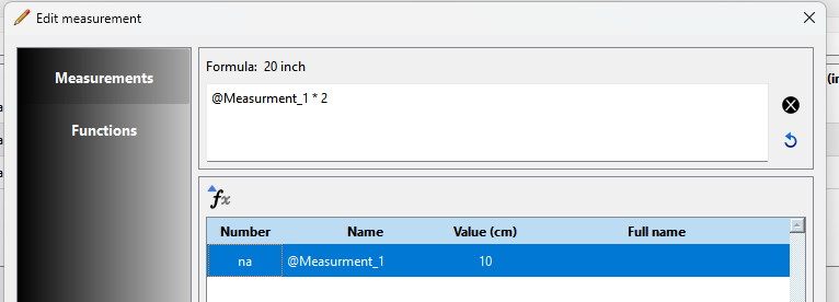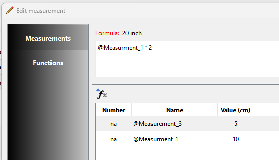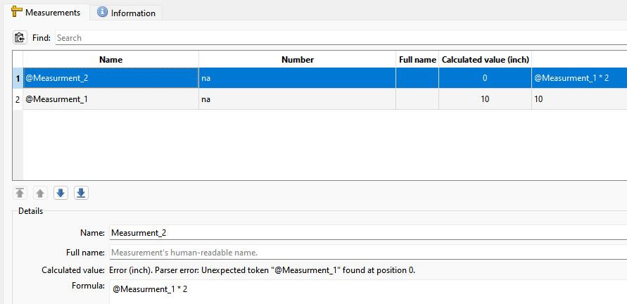 For example… I have here 2 measurements… Measurement_1 and Measurement_2. The formula for Measurement_2 is Measurement_1 * 2, or twice the value of Measurement_1.