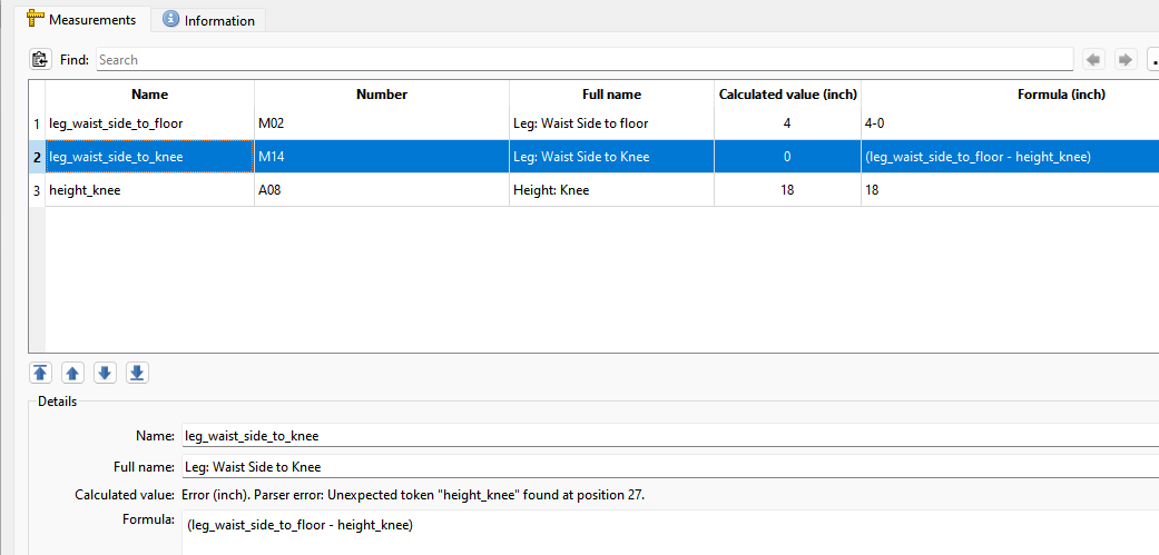 When you use other measurements in formulas those measurments have to be above the measurement with the formula.