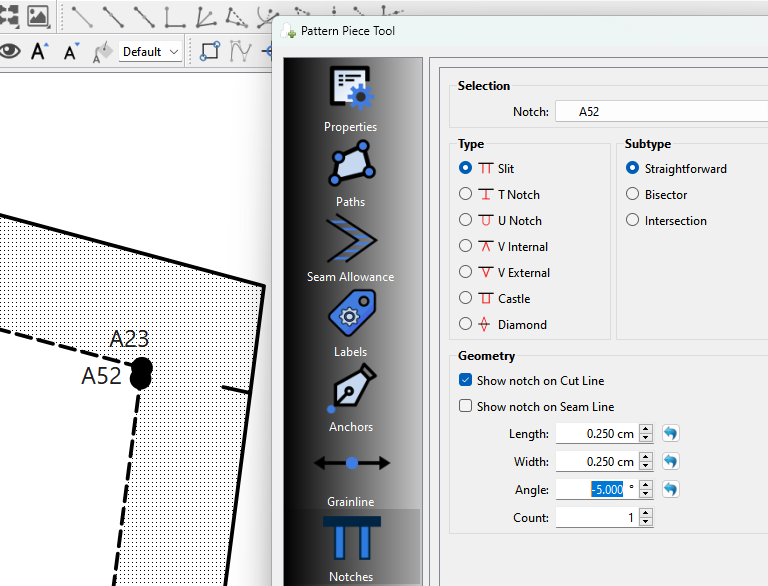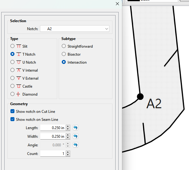 Note⌠If a pattern was just for my own use I wouldnât care that an intersection has a notch on both seams⌠Iâm ony going to punch the I want. If I was making the pattern for someone else then I might want to have only 1 of the notches - depending on the pattern - as to not confuse others. In most cases an intersection notch is to indicate what seam is getting sewn first and a general idea what the seam width is - unlike a notch in the middle of a seam that indicates a point that 2 pieces need to match up.