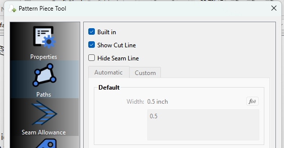 Since you’re working with a system that has builtin SA as well as needing additional SA in spots, I suggest setting your default SA in the prefs to 0, so that all the seam allowances have a 0 width. Then for those that you need to add SA you can set it to 1cm or whatever. If a pattern has all built in SA’s you could just check the Built in option which disables all seam allowances where it doesn’t allow you to add SA anywhere.