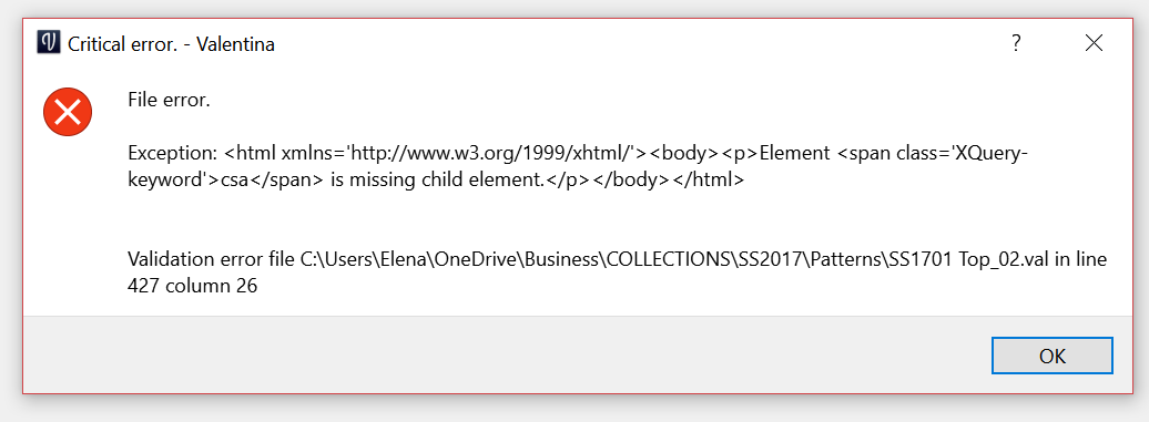 However, after successfully saving the files in this new test build, I am unable to re-open them and getting the following error: