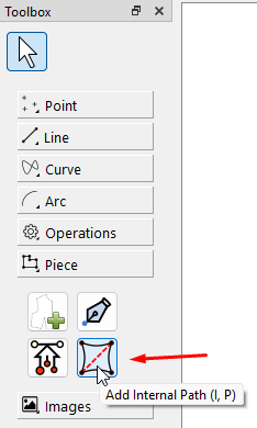 mir scheint, Sie möchten einen internen Pfad erstellen, wobei die beiden Linien auf dem Schnittmusterteil markiert sind: