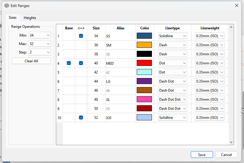 I plan on scraping the size / heights "Grade Rules " dialogs and integrating the functionality directly into the main measurements table with color coded columns for each size to enter the increments in one table VS having to open a size & height rule dialog to set the increments for each measurement - which is tedius. For ex… the measurement file I’ve been testing with has 28 measurements… that means one would have to open a grade rule dialog 56 times to set all the increments across the ranges of sizes, heights, and measurements.