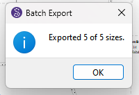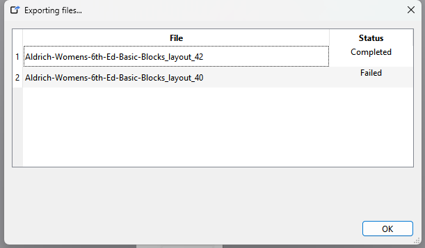 This is the progress dialog after exporting in layout mode.. where I canceled creating the 1st size… as you can see it shows “Failed”… and no progress bar: