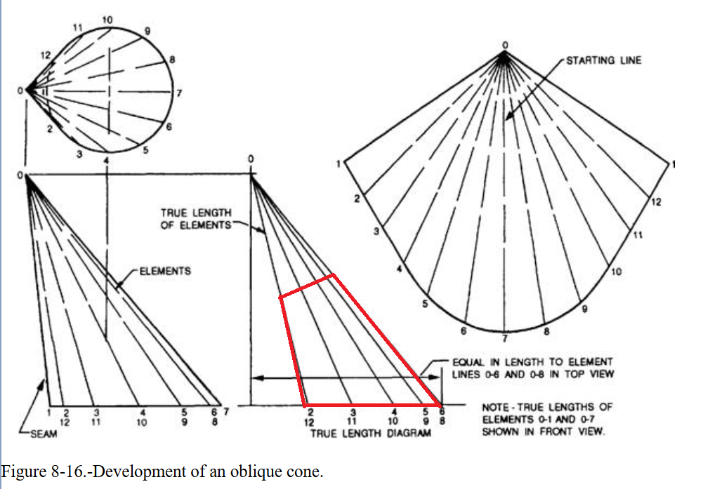 BTW… for anyone interested… a sleeve pattern is more or less a truncated oblique cone. We had to draft this sort of thing waaay back in 7th grade drafting class.