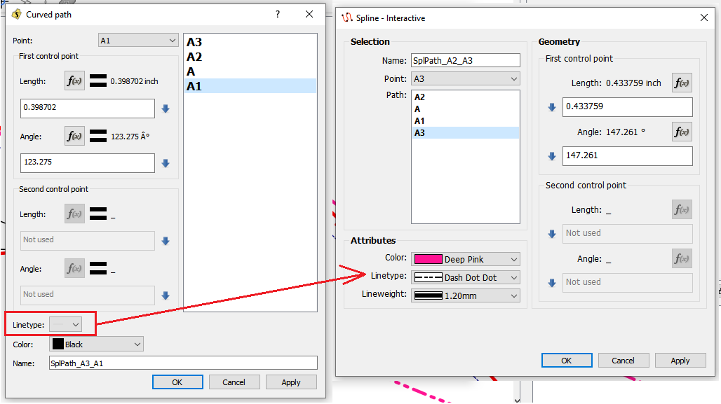 The curves & splines are probably the ones that got reorganized / fixed the most… fixed is the lineType in all of them. Some may note the change in the curve tool name format… there’s now Curve, Spline (which is more or less multiple consecutive curves), and whether the control points are fixed or interactively movable. BTW… I think we need a tooltip to note that in the Spline tools- highlighting a point in the path, and then selecting a (new?) point in the dropdown, changes the point in the path. Currently the path doesn’t immediately update, and it may be confusing to new users.