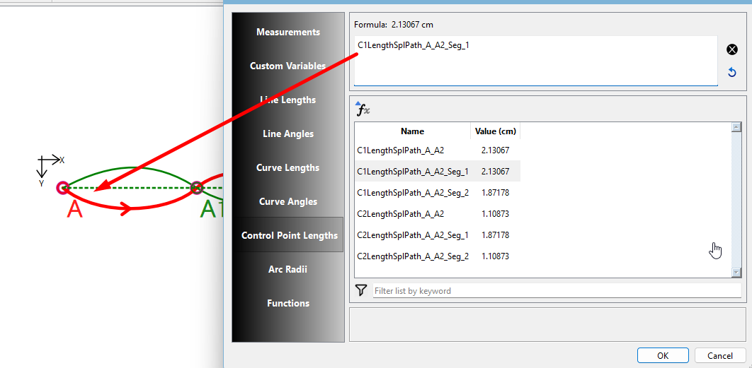 Yes, those are the control handle lengths that I would use in a formula. The C1 in front of the spline name means Control Handle 1. If you scroll down a bit, you’ll find the same with a C2 in front. These are the 2nd Control Handles.