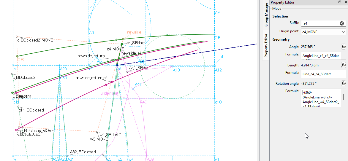 In the attached pattern, I moved the points of the back bodice to join the front bodice so I could draw a smooth curve for the top (suffix: MOVE), then I’ve used the opposite formula to return it back to the original position (suffix: return), but it’s not returning to the correct position. Any idea why?!
