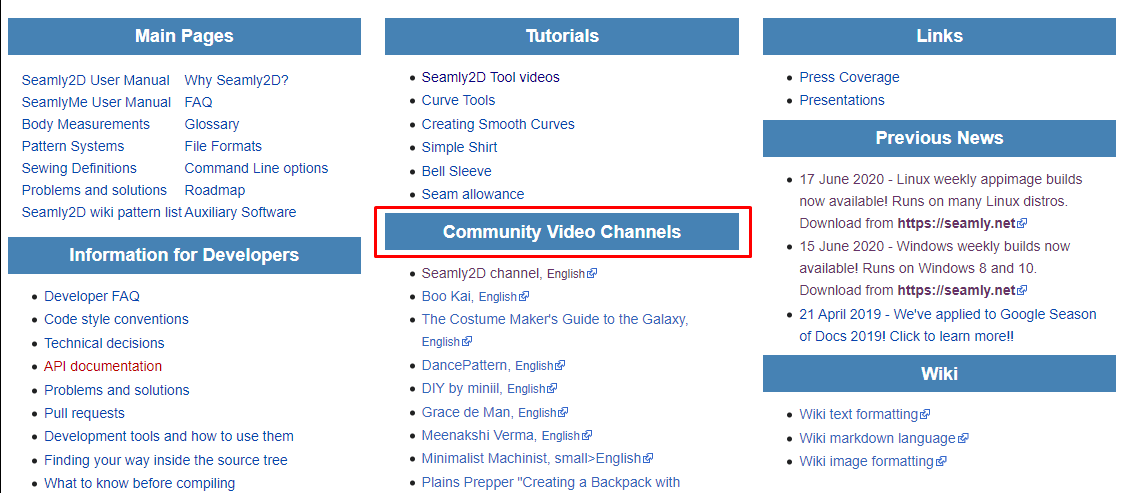 Minimalist Machinist on youtube showed how the links at the top of Seamly are not visible and then somehow expanded the site and the links showed up. I can’t see how to expand the site to make them appear which is why i was asking for the links from someone who could see them