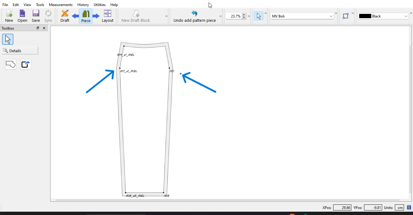 Also, how do i copy the exact curve i have on the highlighted draft piece to the other draft piece (red arrows). That’s I want to have the same side seam curve on both front and back piece. I tried copying the exact line length and angle for the curve but that didn’t result to an exact curve.